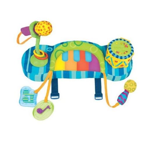 Sassy Rock & Stroll Play PadThis fun, musical stroller pad plays eight songs and melodies and features colorful lights. The piano has two modes: music and lights or lights only and includes an on/off switch. Play pad also includes a snack cup drum with tethered drumstick chime, click-n-clack musical notes, and a squeaker microphone. Adjustable straps allow for easy attachment to all strollers. Readmore .. .